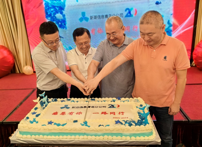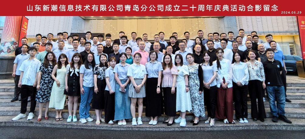 2024年6月,新潮信息青島分公(gong)司舉辦(ban)成立二(er)十周年慶典,公(gong)司管理人(ren)員和全體員工歡(huan)聚一(yi)堂,共敘20年(nian)走過的風雨歷程,共(gong)繪未來發展新藍圖。
