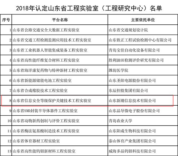 2018年7月,新潮信息被認定為濟南市企業技術中心。