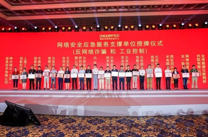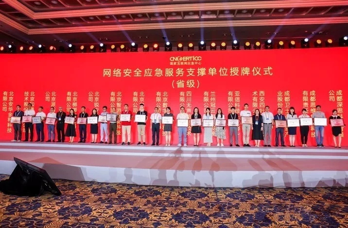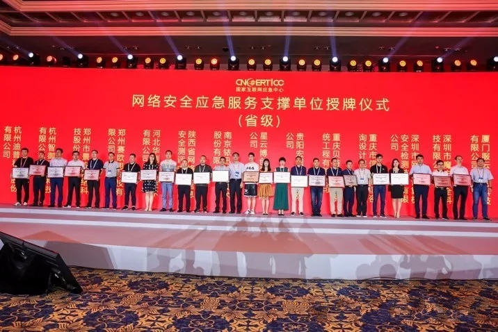 2019年7月17日下午,國家互聯網應急(ji)中心(CNCERT)在2019年(nian)中國網絡(luo)安全年(nian)會(hui)上(shang)舉行了第八屆網絡(luo)安全應急服務支撐(cheng)單位授(shou)牌儀式,為103個支撐(cheng)單(dan)位授牌。