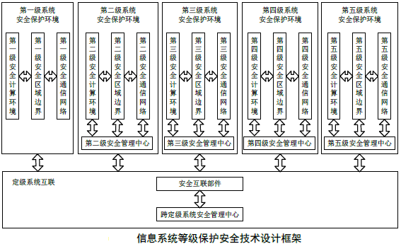 信(xin)息系(xi)統(tong)(tong)(tong)等級(ji)(ji)保護(hu)(hu)安(an)(an)全(quan)(quan)(quan)技(ji)術設計(ji)(ji)包括各級(ji)(ji)系(xi)統(tong)(tong)(tong)安(an)(an)全(quan)(quan)(quan)保護(hu)(hu)環境的設計(ji)(ji)及其安(an)(an)全(quan)(quan)(quan)互聯的設計(ji)(ji)。各級(ji)(ji)系(xi)統(tong)(tong)(tong)安(an)(an)全(quan)(quan)(quan)保護(hu)(hu)環境由(you)相應級(ji)(ji)別的安(an)(an)全(quan)(quan)(quan)計(ji)(ji)算環境、安(an)(an)全(quan)(quan)(quan)區域邊界、安(an)(an)全(quan)(quan)(quan)通信(xin)網絡和(或)安(an)(an)全(quan)(quan)(quan)管理中心組(zu)成(cheng)。定級(ji)(ji)系(xi)統(tong)(tong)(tong)互聯由(you)安(an)(an)全(quan)(quan)(quan)互聯部件和跨(kua)定級(ji)(ji)系(xi)統(tong)(tong)(tong)安(an)(an)全(quan)(quan)(quan)管理中心組(zu)成(cheng)。